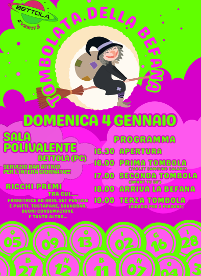 Domenica 4 gennaio, la Sala Polivalente di Bettola ospita la Tombola della Befana, un appuntamento dedicato al gioco e alla tradizione, pensato per coinvolgere grandi e piccoli.