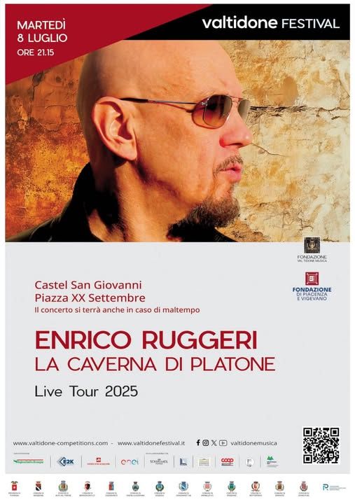 Martedì 8 luglio, alle ore 21.15 in Piazza XX Settembre a Castel San Giovanni, Enrico Ruggeri sarà protagonista del concerto “La caverna di Platone – Live Tour”, ispirato al suo nuovo album di inediti uscito a gennaio per Sony Music.