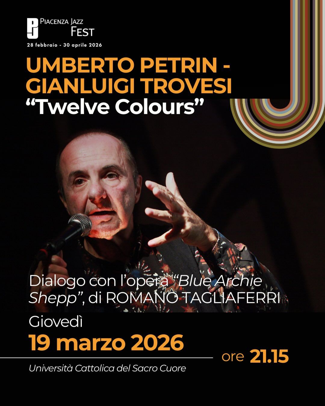 Giovedì 19 marzo alle ore 21.15, all’Università Cattolica del Sacro Cuore di Piacenza, appuntamento con Gianluigi Trovesi e Umberto Petrin e il progetto "Twelve Colours" per il Piacenza Jazz Fest.