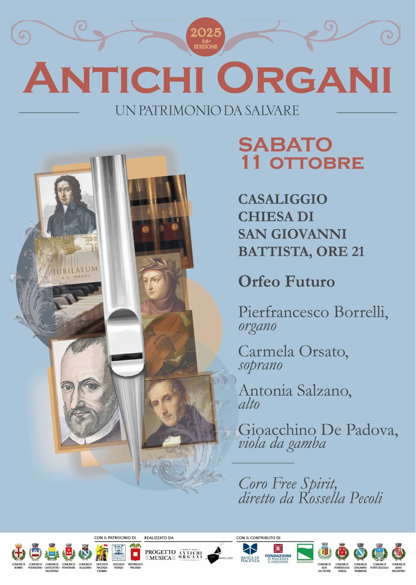 Sabato 11 ottobre, alle ore 21.00, la Chiesa di San Giovanni Battista a Casaliggio ospiterà un nuovo appuntamento della rassegna “Antichi Organi – Un patrimonio da salvare”.