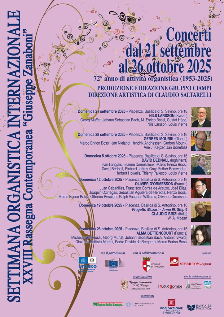 La 28ª Rassegna Contemporanea “Giuseppe Zanaboni” – Progetti Speciali 2025 e la 72ª Settimana Organistica Internazionale 2025 tornano a Piacenza con un programma di eccezionale livello artistico, confermando la città come punto di riferimento internazionale per il concertismo organistico.