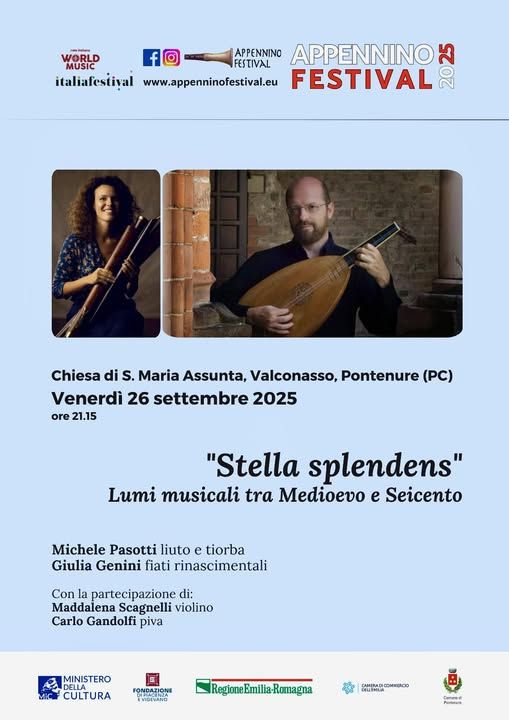Venerdì 26 settembre, alle ore 21.15, la piccola chiesa di Santa Maria Assunta di Valconasso a Pontenure, lungo il percorso francigeno piacentino, ospiterà Michele Pasotti e Giulia Genini, protagonisti dei successi europei del 2025.