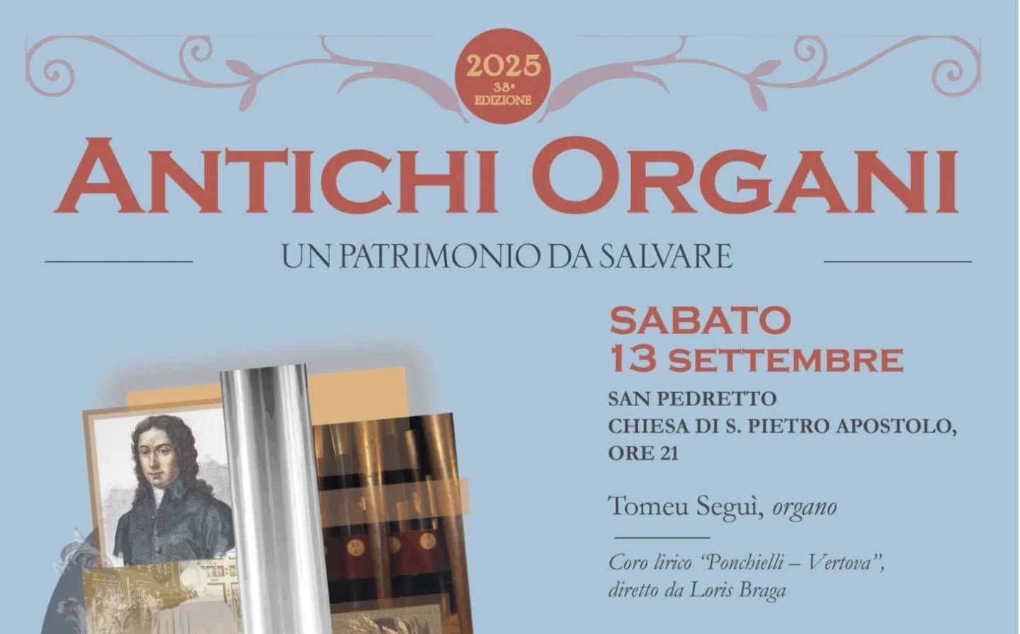 Sabato 13 settembre alle ore 21.00, nella suggestiva Chiesa di San Pietro Apostolo a San Pedretto, si terrà il secondo appuntamento della 38ª Rassegna “Antichi Organi – Un patrimonio da salvare”.