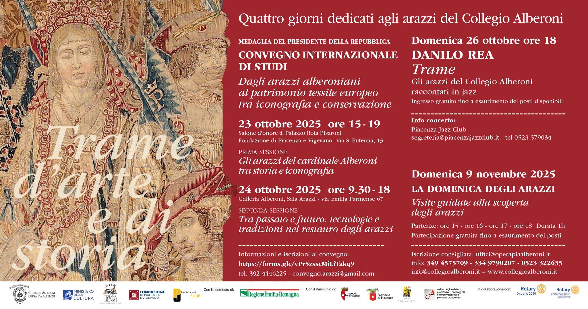Nell’ambito del progetto “Trame d’arte e di storia”, domenica 26 ottobre alle ore 18.00 la Galleria Alberoni ospita “Trame”, un concerto sperimentale per pianoforte e arazzi.