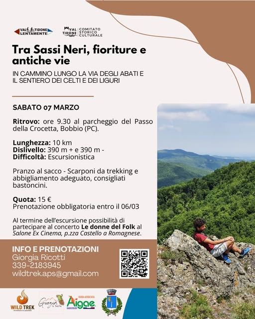 Sabato 7 marzo è in programma “Tra Sassi Neri, fioriture e antiche vie”, escursione guidata che inaugura il calendario Valtidone Lentamente 2026.