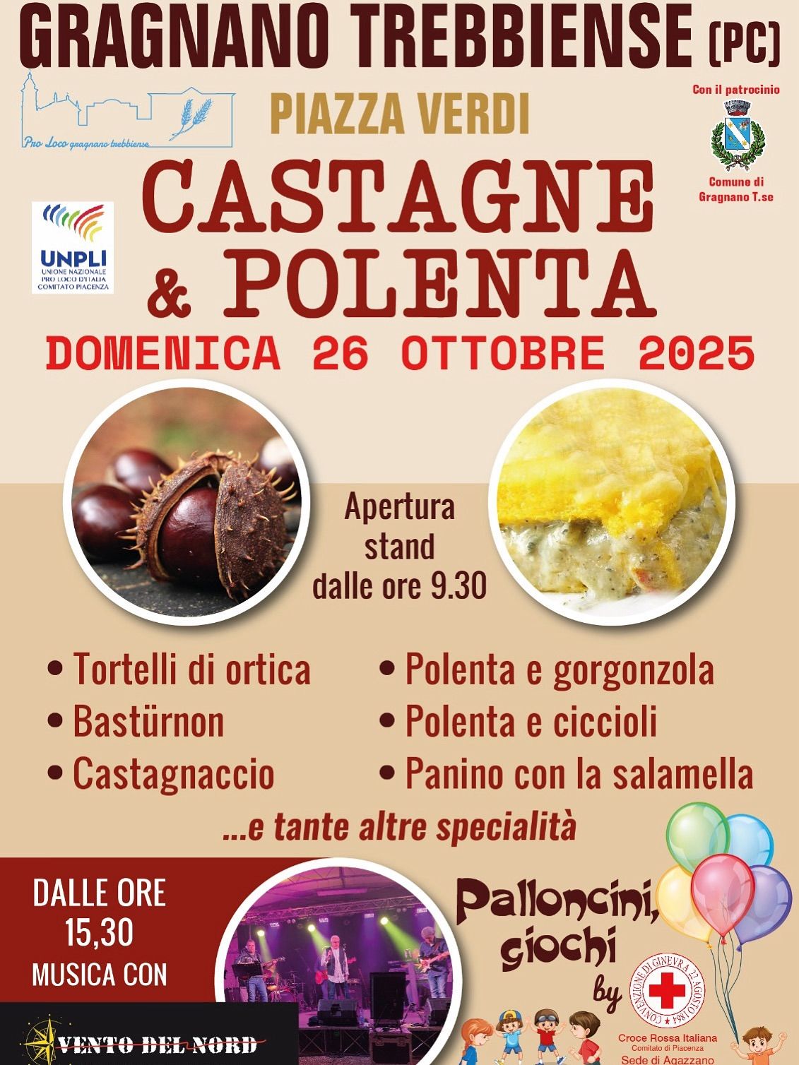 Domenica 26 ottobre, Piazza Verdi si anima con Castagne & Polenta, una giornata di gusto e divertimento per tutti.