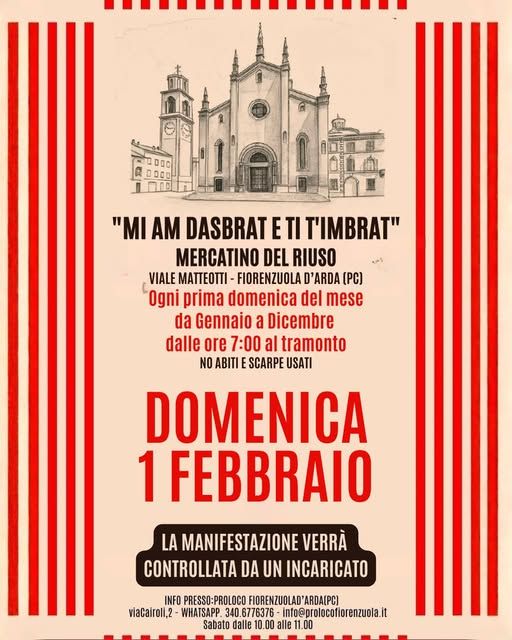 Info presso: Pro Loco Fiorenzuola d’Arda (via Cairoli, 2 - Sabato dalle 10 alle 11) – WhatsApp 340 6776376 – [email protected]