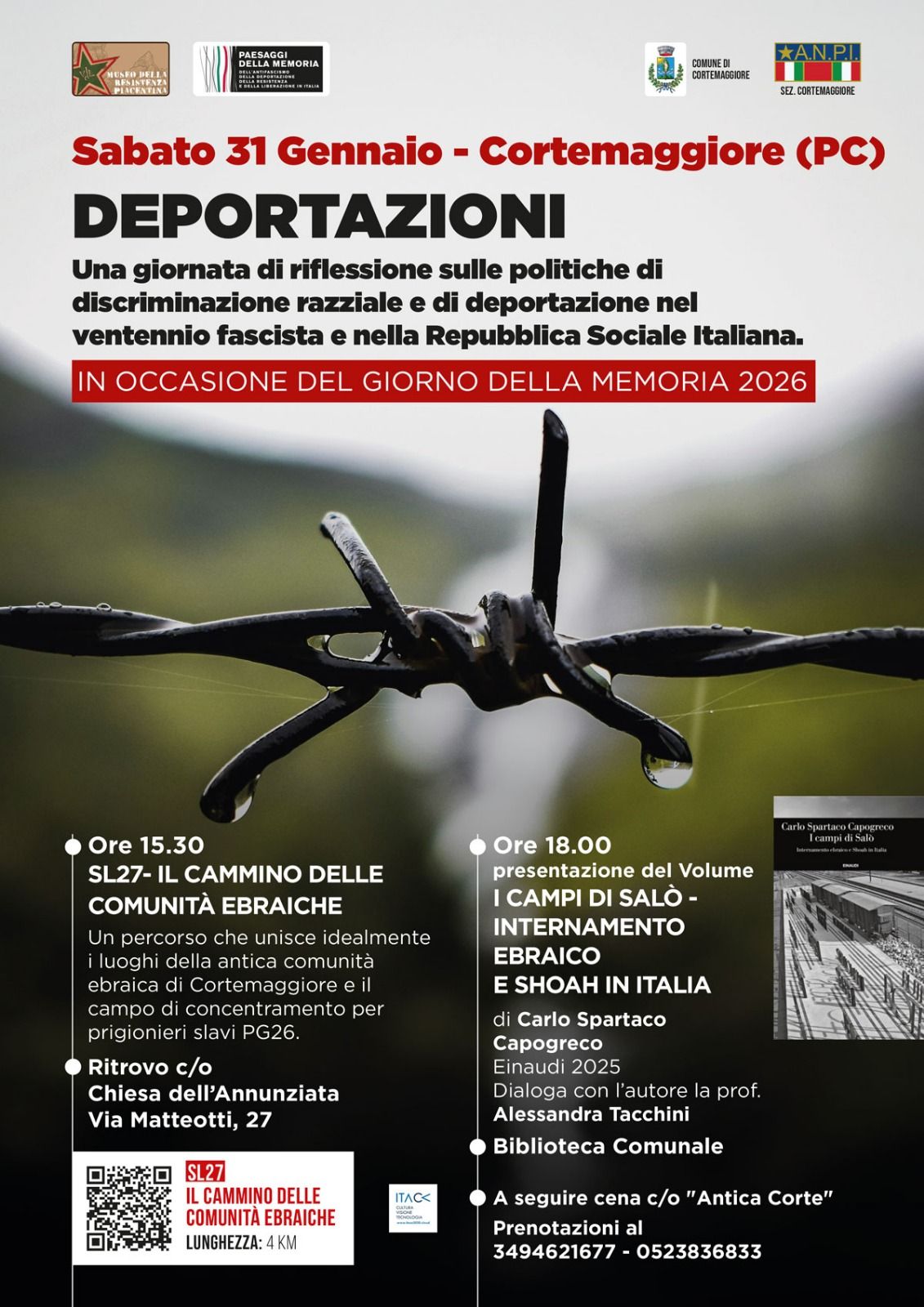 Sabato 31 gennaio, a Cortemaggiore, si terrà una giornata di riflessione dedicata alle politiche di discriminazione razziale e di deportazione nel ventennio fascista e durante la Repubblica Sociale Italiana, in occasione del Giorno della Memoria2026.