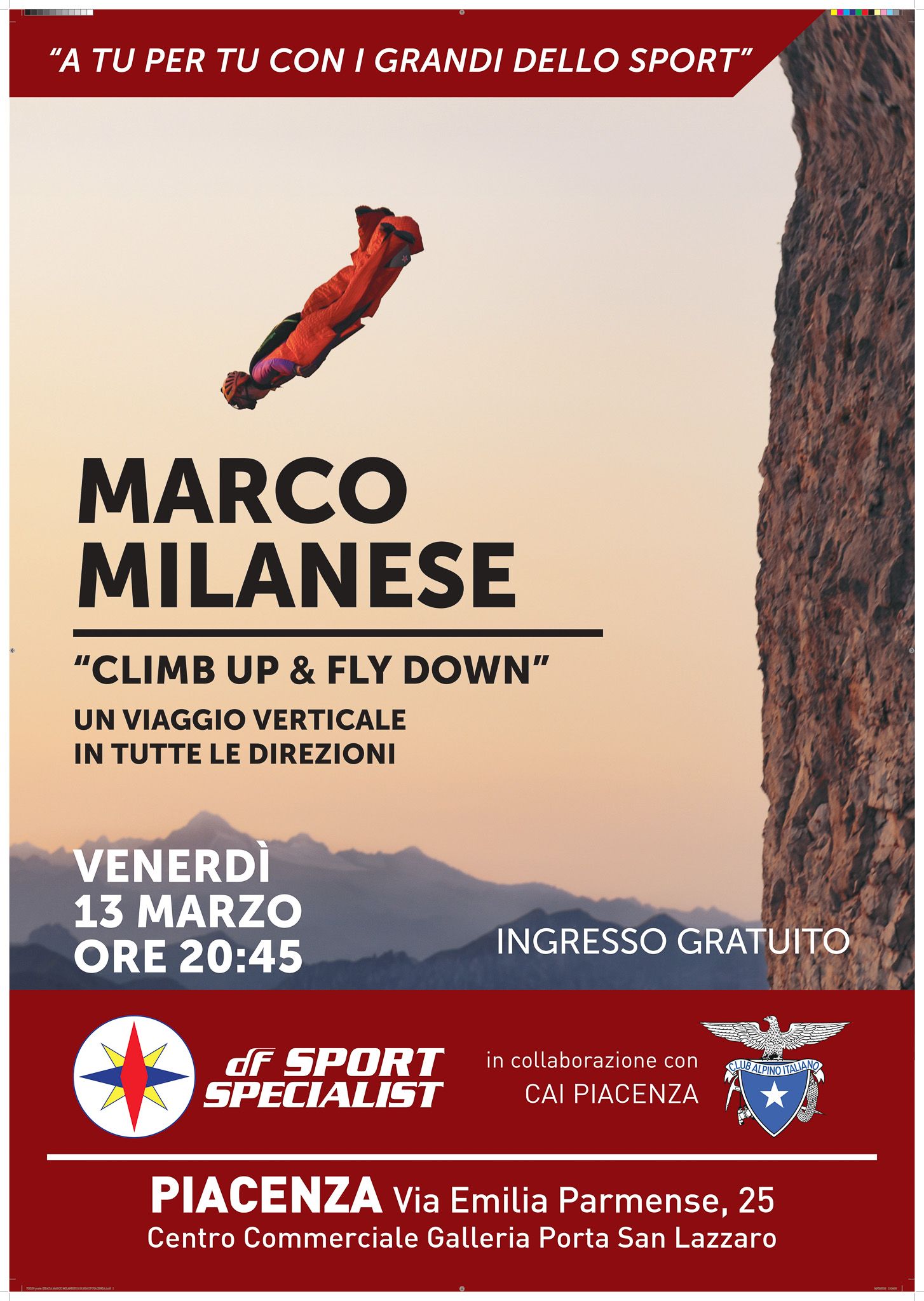 Protagonista della serata sarà Marco Milanese, alpinista per passione e guida alpina per professione, che presenterà l’incontro "Climb up & Fly down – un viaggio verticale in tutte le direzioni".
