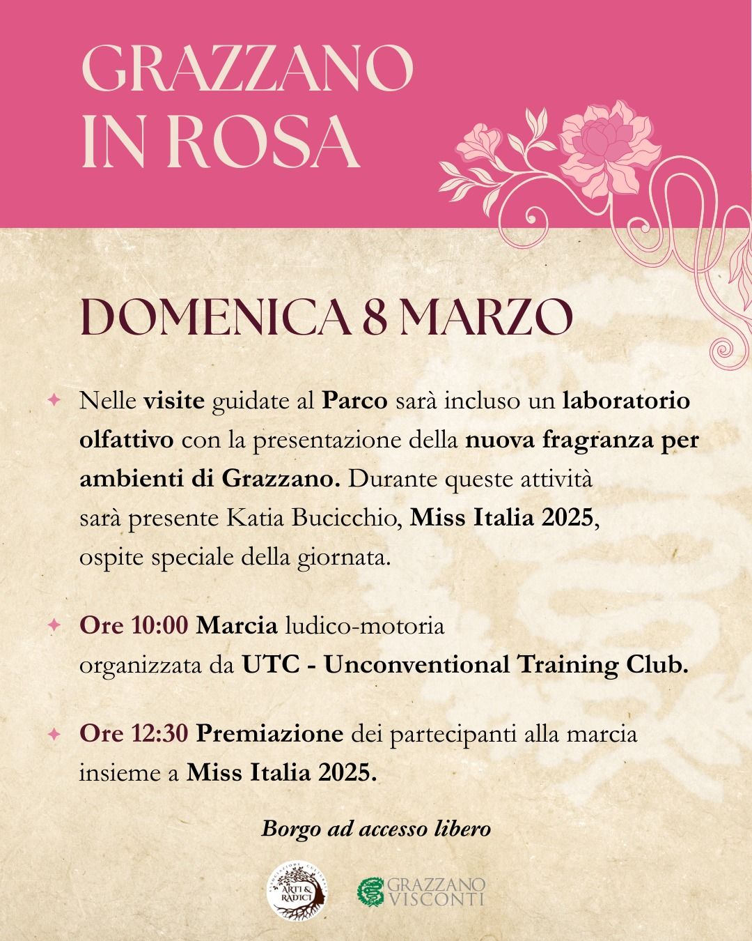 • Durante le visite al Parco: laboratorio olfattivo e presentazione della nuova fragranza per ambienti di Grazzano, a cura di Beatrice Granucci, con la partecipazione di Katia Buchicchio, Miss Italia 2025.