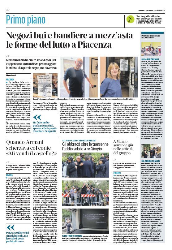 Addio maestro Giorgio. Le pagine di Libertà dedicate ad Armani