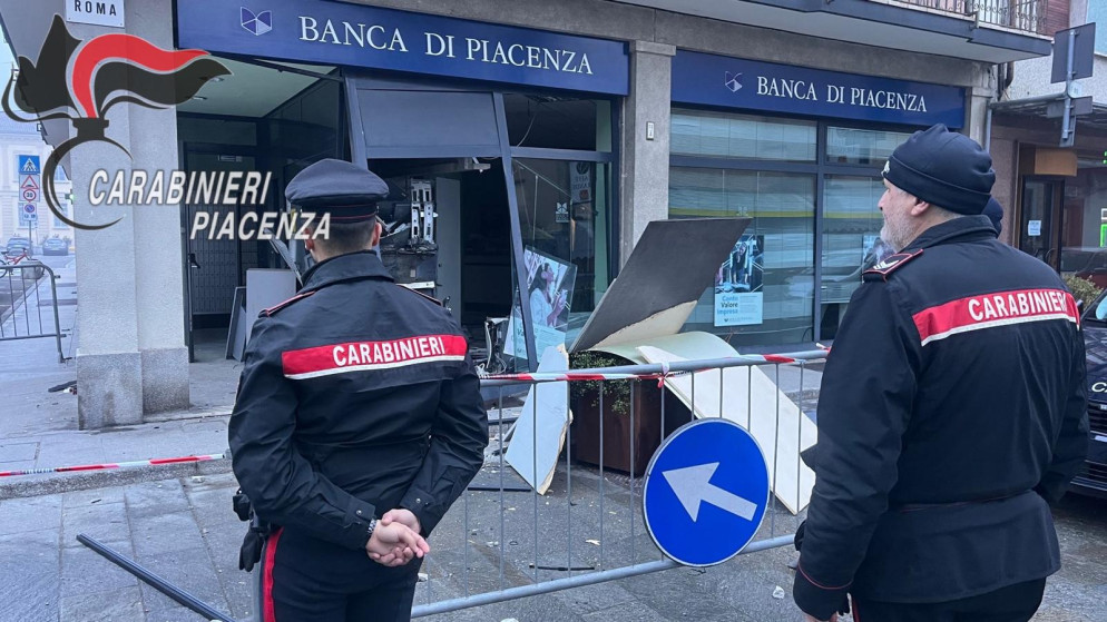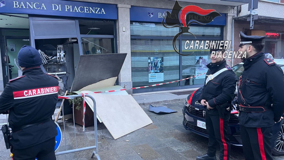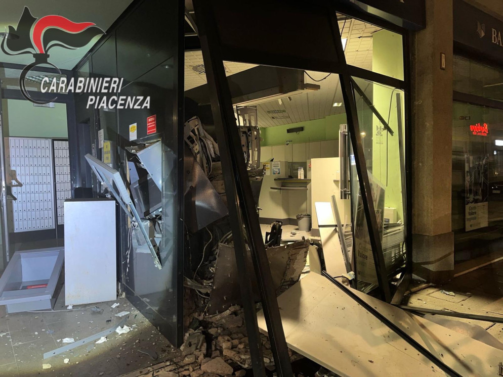 Boato nella notte a Caorso, sventrato il bancomat: ladri in fuga, bottino 25mila euro