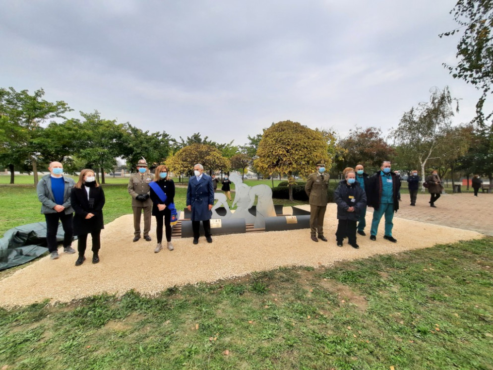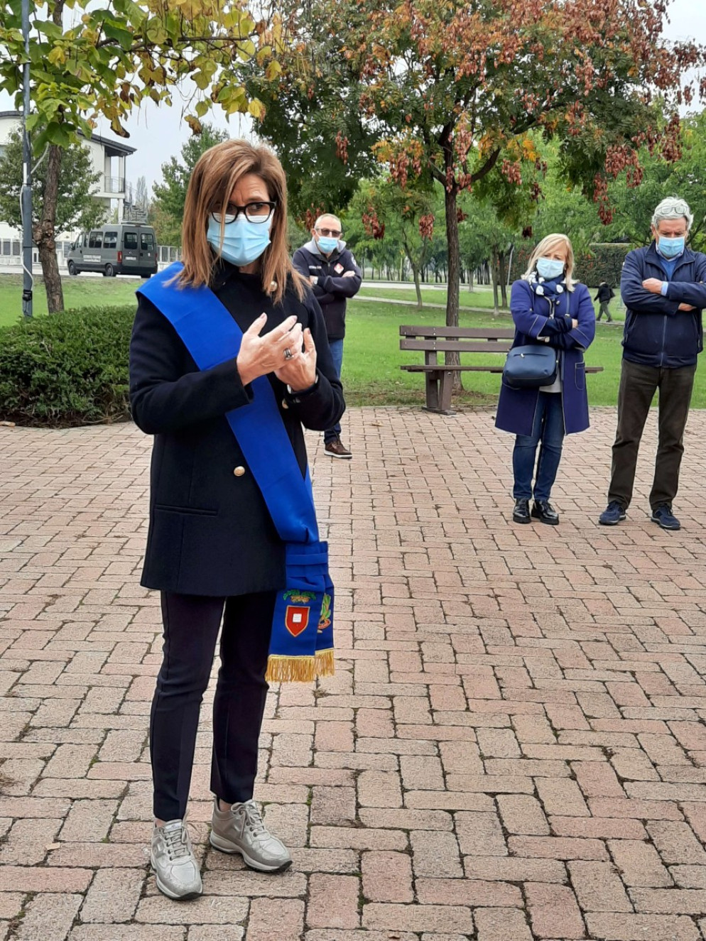 Presenti inoltre il professor Ferruccio Carra, coordinatore delle classi del Liceo artistico “Cassinari” che hanno lavorato al progetto del monumento, e la studentessa autrice del bozzetto, Chiara Donetti.