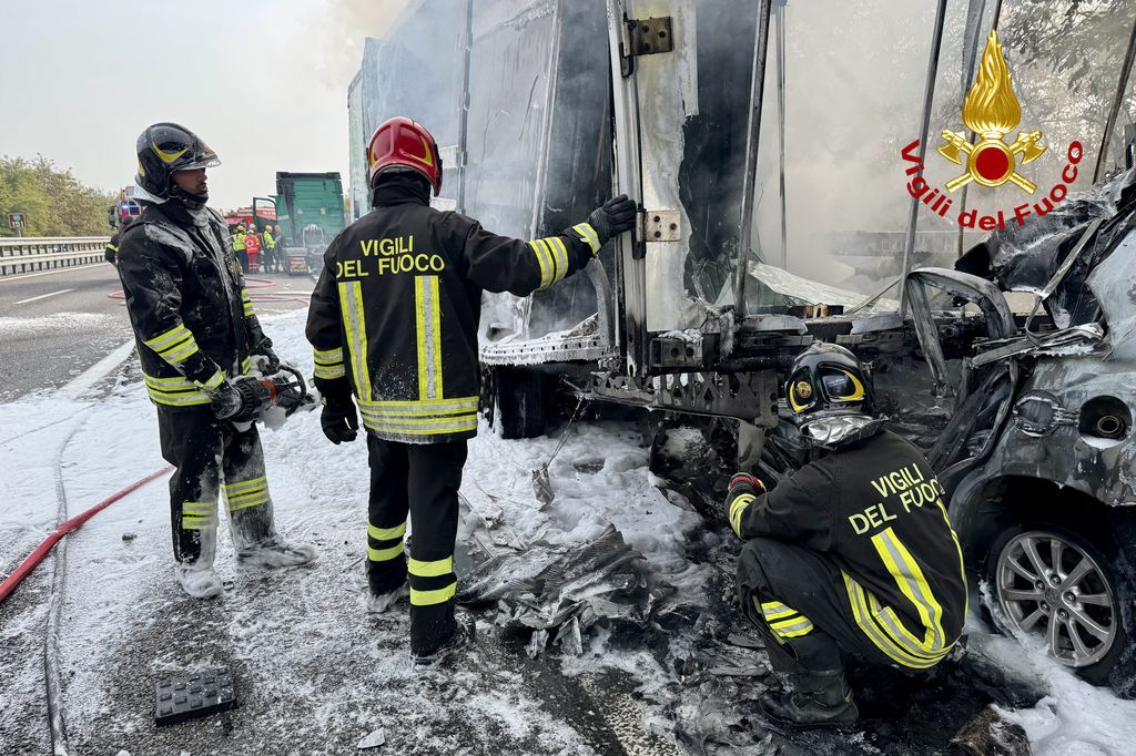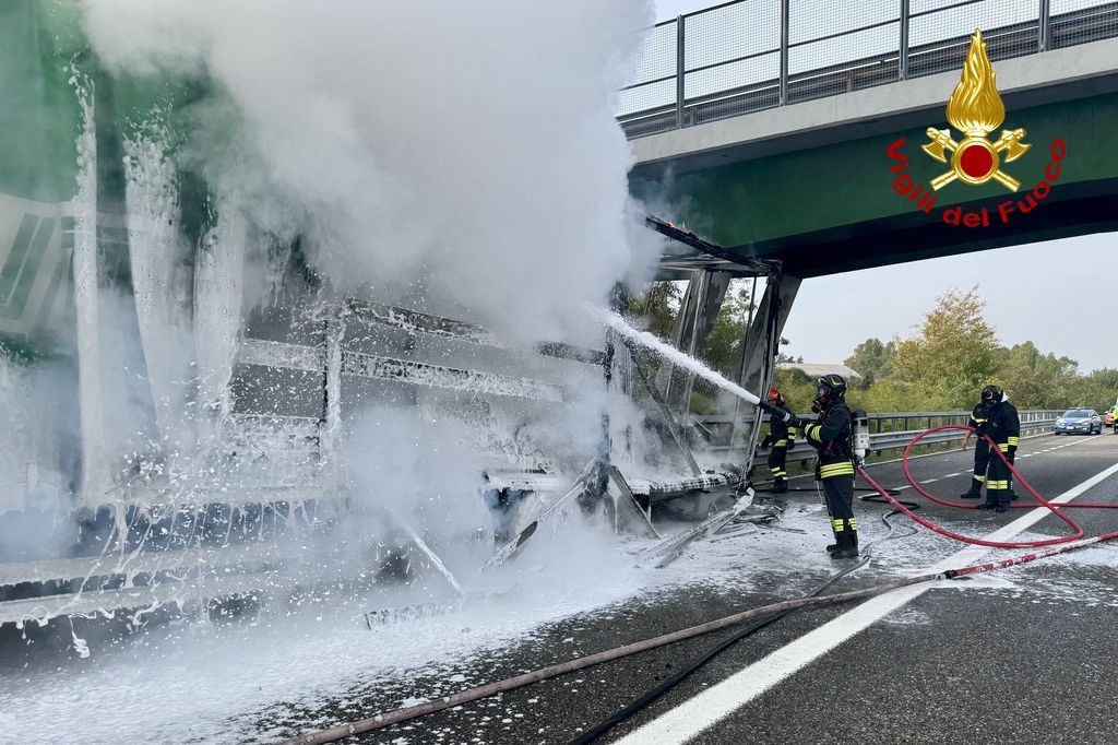 Un semirimorchio e un'auto sono andati a fuoco tra Piacenza Ovest e Piacenza Sud in direzione Brescia. Sul posto Vigili del fuoco di Piacenza e Cri