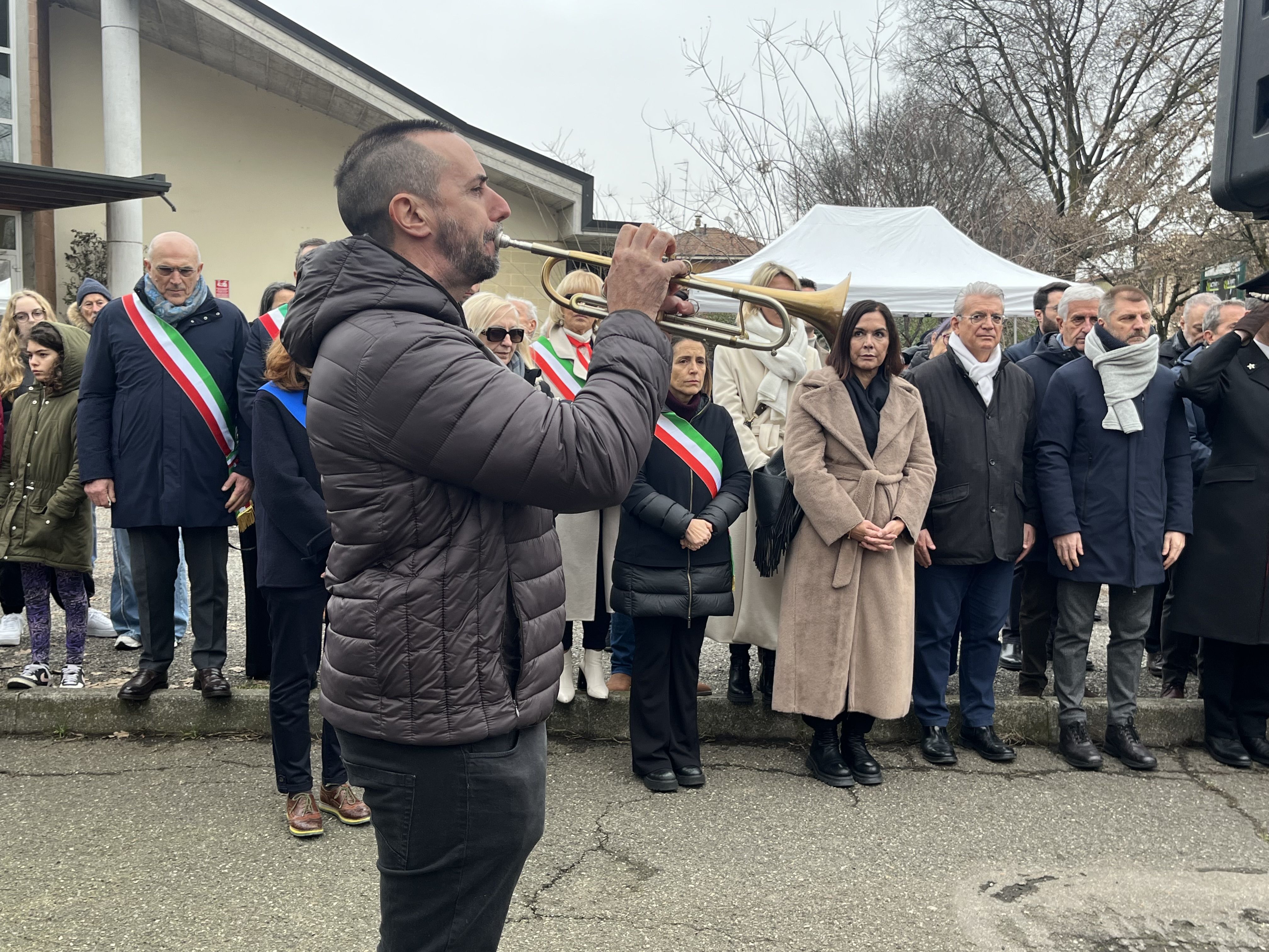 Al termine della cerimonia, don Federico Tagliaferri ha ricordato che «il nostro impegno è che ciò che è accaduto di così atroce nella storia non si ripeta» e infine ecco le note del Silenzio suonate dal musicista della Banda Ponchielli.