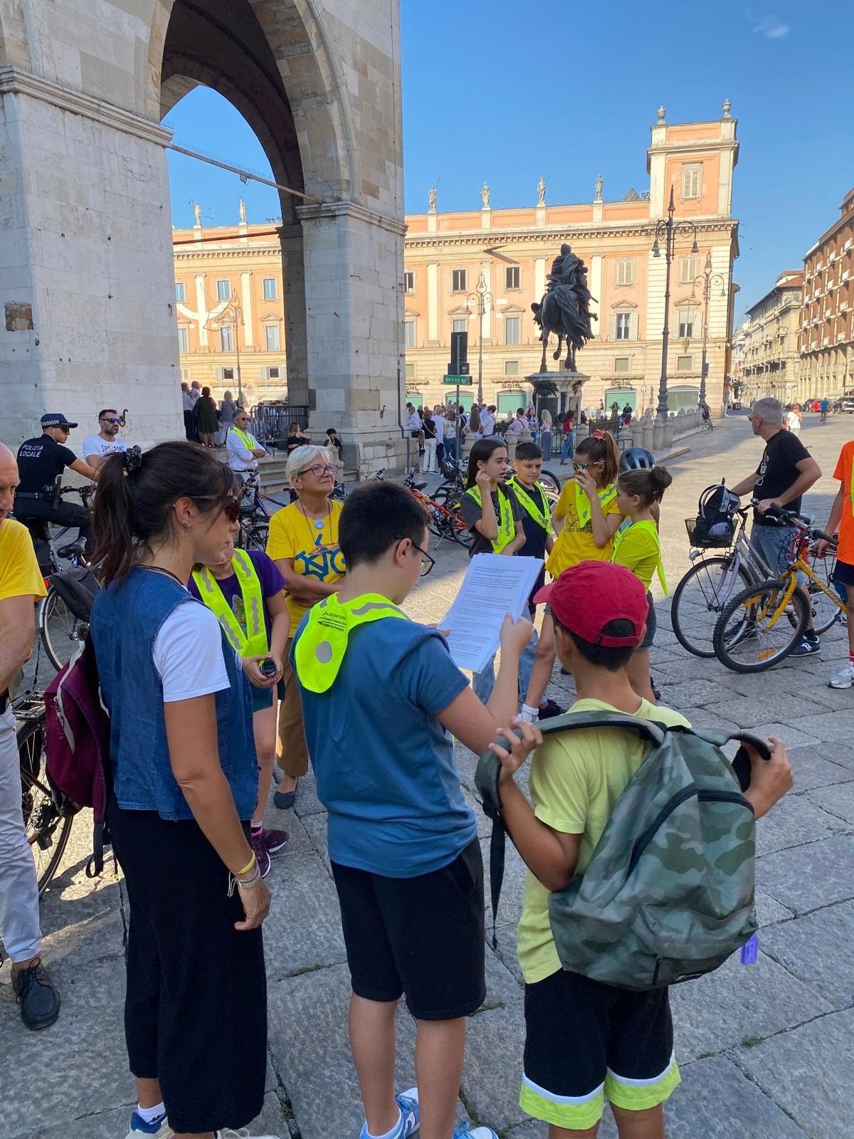 Partenza sprint per il Tour Farnesiano di Piacenza in bicicletta del Consiglio comunale dei Ragazzi. Sabato 20 settembre, nell'ambito della Settimana europea della Mobilità, i giovani studenti hanno pedalato lungo un itinerario urbano che li ha visti fare tappa nei luoghi più significativi della città legati alla storia dei Farnese, approfondendo la conoscenza dei monumenti e del loro valore culturale.