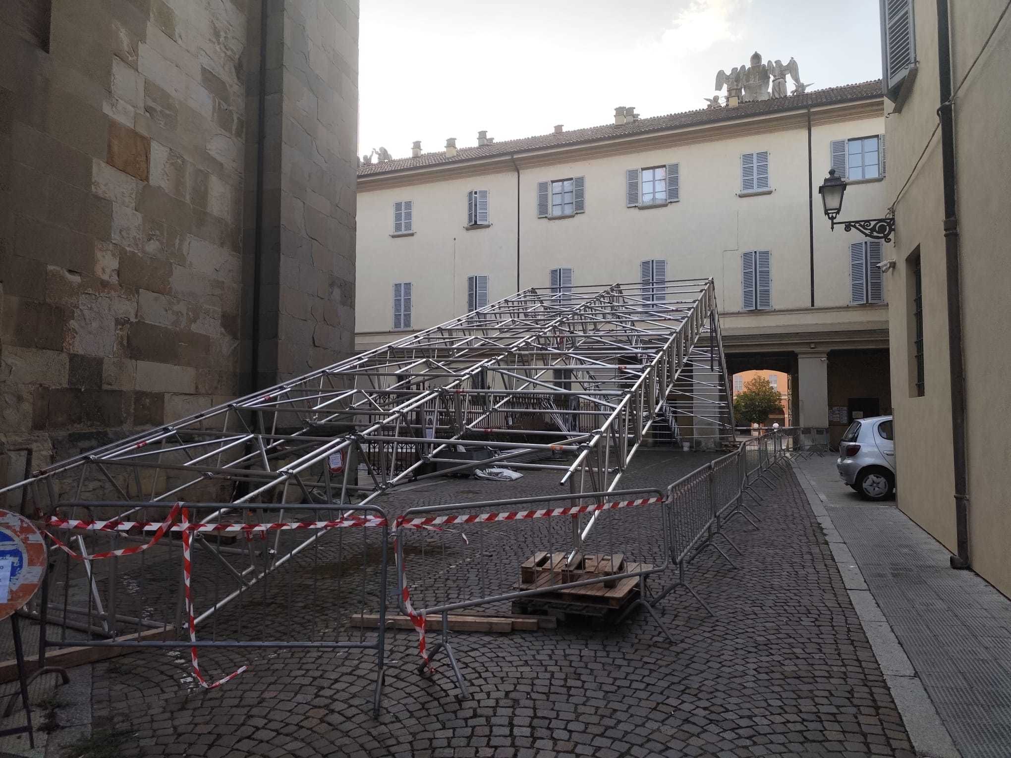 L'impalcatura sulla facciata della cattedrale - © Libertà/Elisabetta Paraboschi