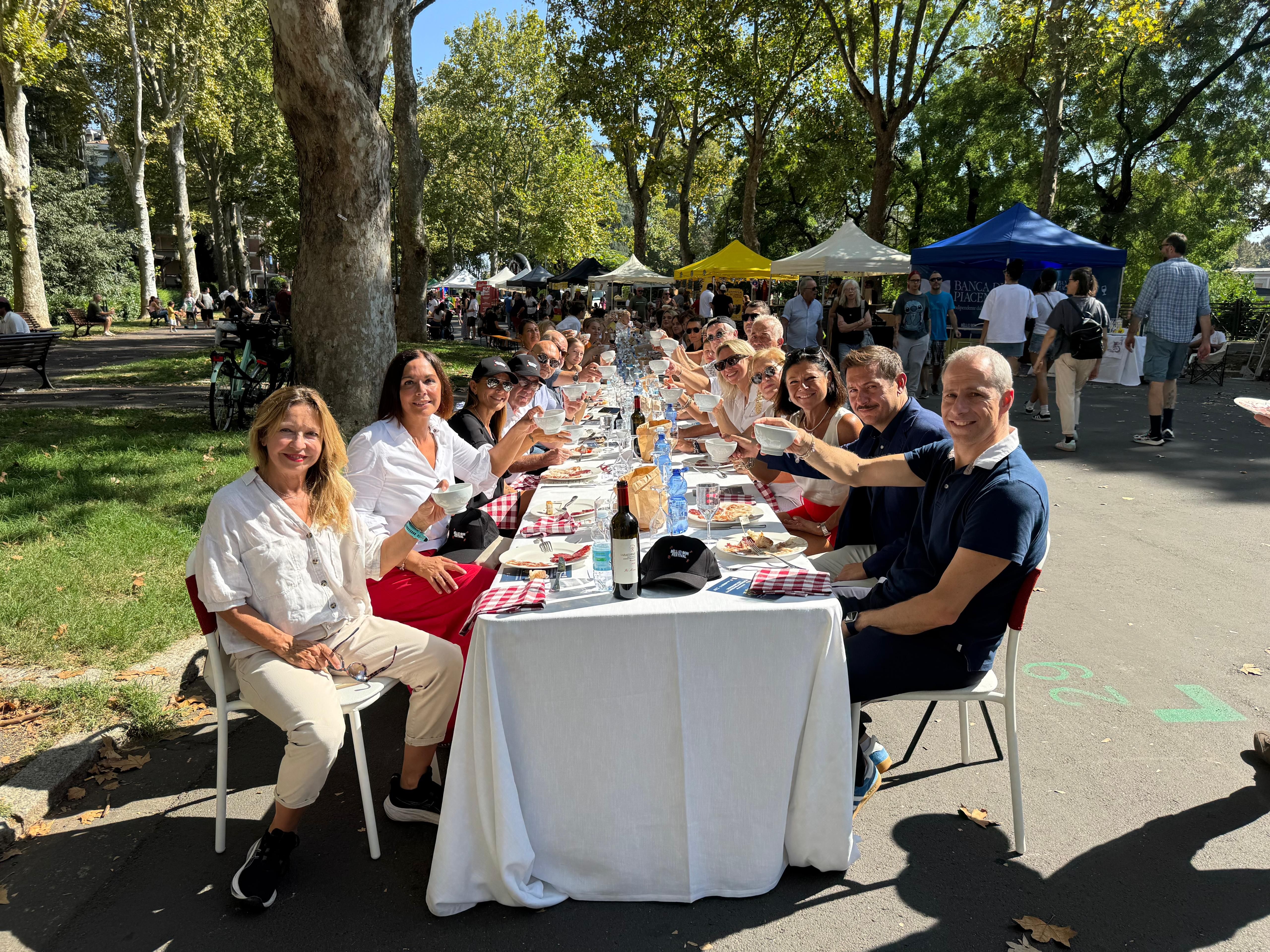 Una lunga tavolata con l’eccellenza piacentine, dai salumi Dop, ai tortelli e pissarei, fino alla sbrisolona con gelato allo zabaione, il tutto accompagnati da vini di Baraccone. Presi d’assalto gli stand che offrono il meglio della cucina nostrana: dalla bortellina agli anolini, dalla picùla al cavallo crudo, dal batarò ai ciccioli.