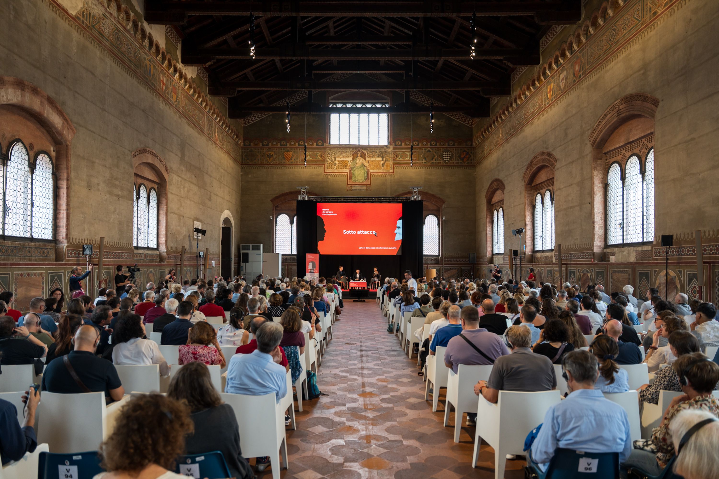 Ci vuole niente perché una democrazia scivoli nell’autarchia. Oltretutto quest’ultime sono 91 al mondo, i paesi democratici 88. Meno di dodici persone su cento vivono in democrazia, spiega Antonio Zappulla che dirige la Thompson Reuters Foundation, al folto pubblico di Palazzo Gotico nell’incontro “Sotto attacco”. Per capirci, gli Usa sono finiti per essere un’autarchia, l’India è una autarchia eletta. Come si riconoscono i sintomi? «Si attaccano certi pilastri, la stampa con leggi per silenziare i dissensi viene superata per rivolgersi direttamente al pubblico, la magistratura “politicizzata” viene accusata di non fare gli interessi del popolo, si sostiene l’Intelligenza artificiale purché non regolata».