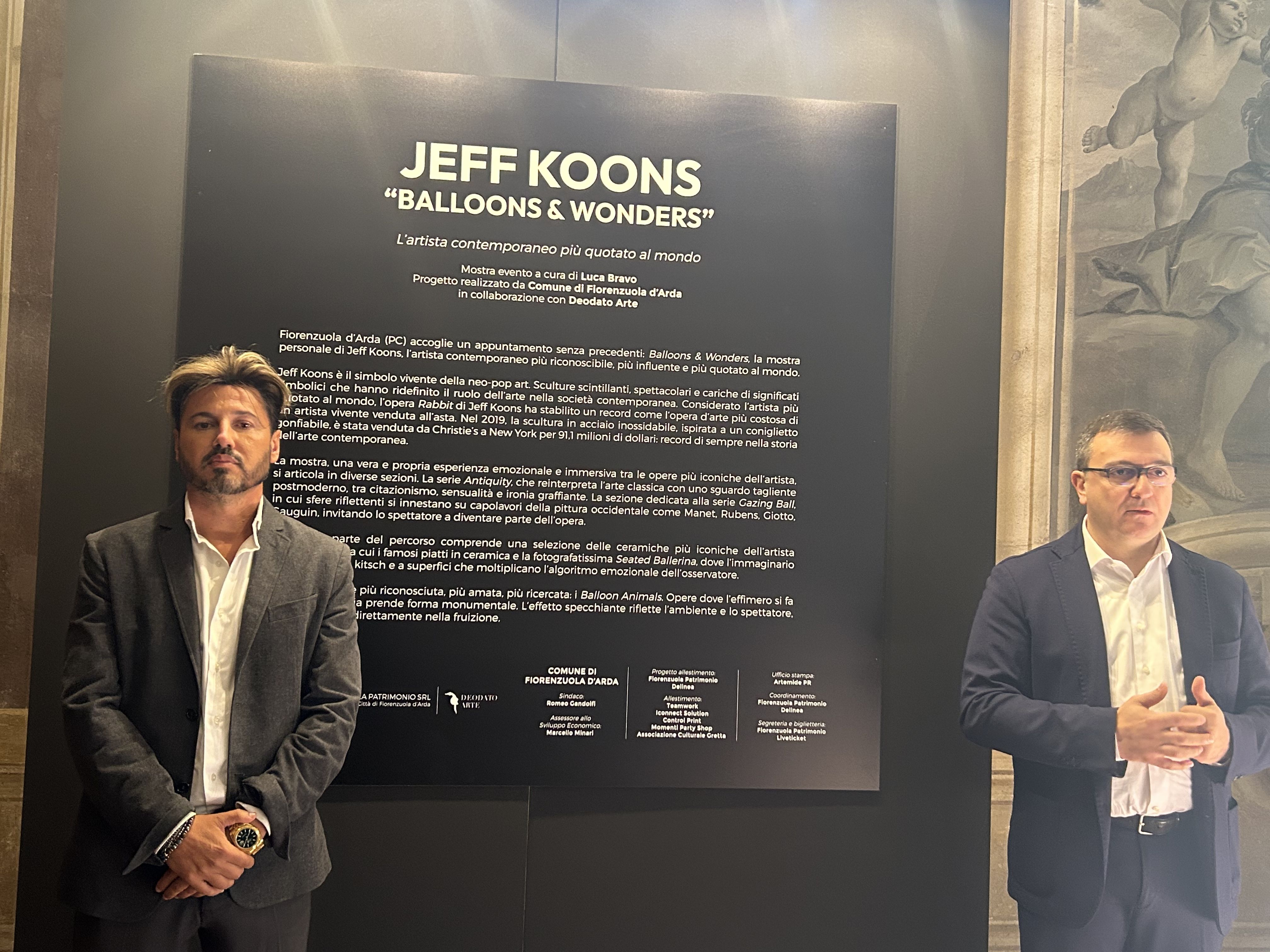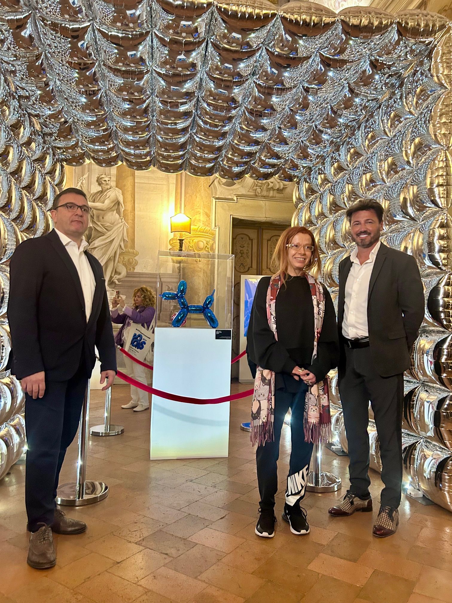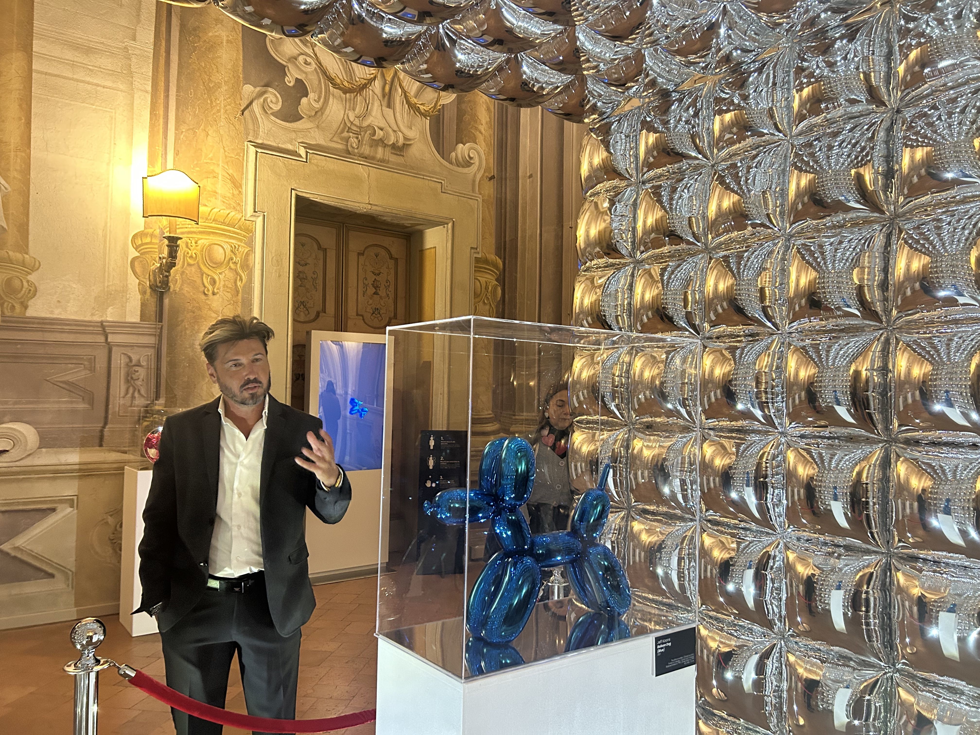 «E’ un’operazione romantica, la mia, visto che io sono originario di questa città»: dice il curatore della mostra Luca Bravo, art consultant, nel giorno del vernissage, di fronte al folto pubblico e alle autorità intervenute. L’ultima sala è dedicata ai Ballons Animals, la serie più conosciuta di Koons: sono sculture di animali dai colori sgargianti in porcellana smaltata, che riprendono le forme dei palloncini. «I palloncini sono di per sé oggetti momentanei, qui resi dall’artista reliquie eterne», osserva Bravo. Il Rabbit, il famoso Ballon Dog posto al centro dell’ultima sala al centro di una suggestiva installazione, e lo Swan (il cigno) sono realizzati in superfici specchianti. Un ulteriore invito alla ‘riflessione’.