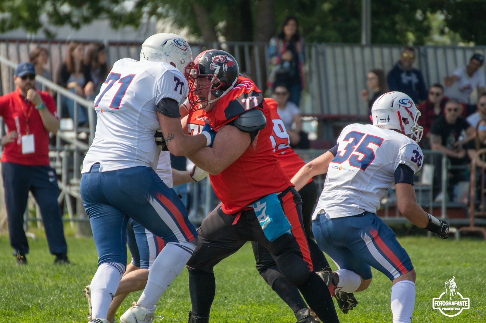 «Non ho mai saltato una partita in tutti questi anni, forse qualche allenamento per un’operazione al naso... sapete, qui si danno e si prendono delle botte! Scherzi a parte, sempre presente, anche con costole incrinate o dita spiegazzate. Per me il football è un amore. Mettere l’armatura, andare in campo tutti insieme, è come essere cavalieri medievali. Si combatte, si soffre e si gioisce insieme. Emozioni così non le trovi da nessun’altra parte».