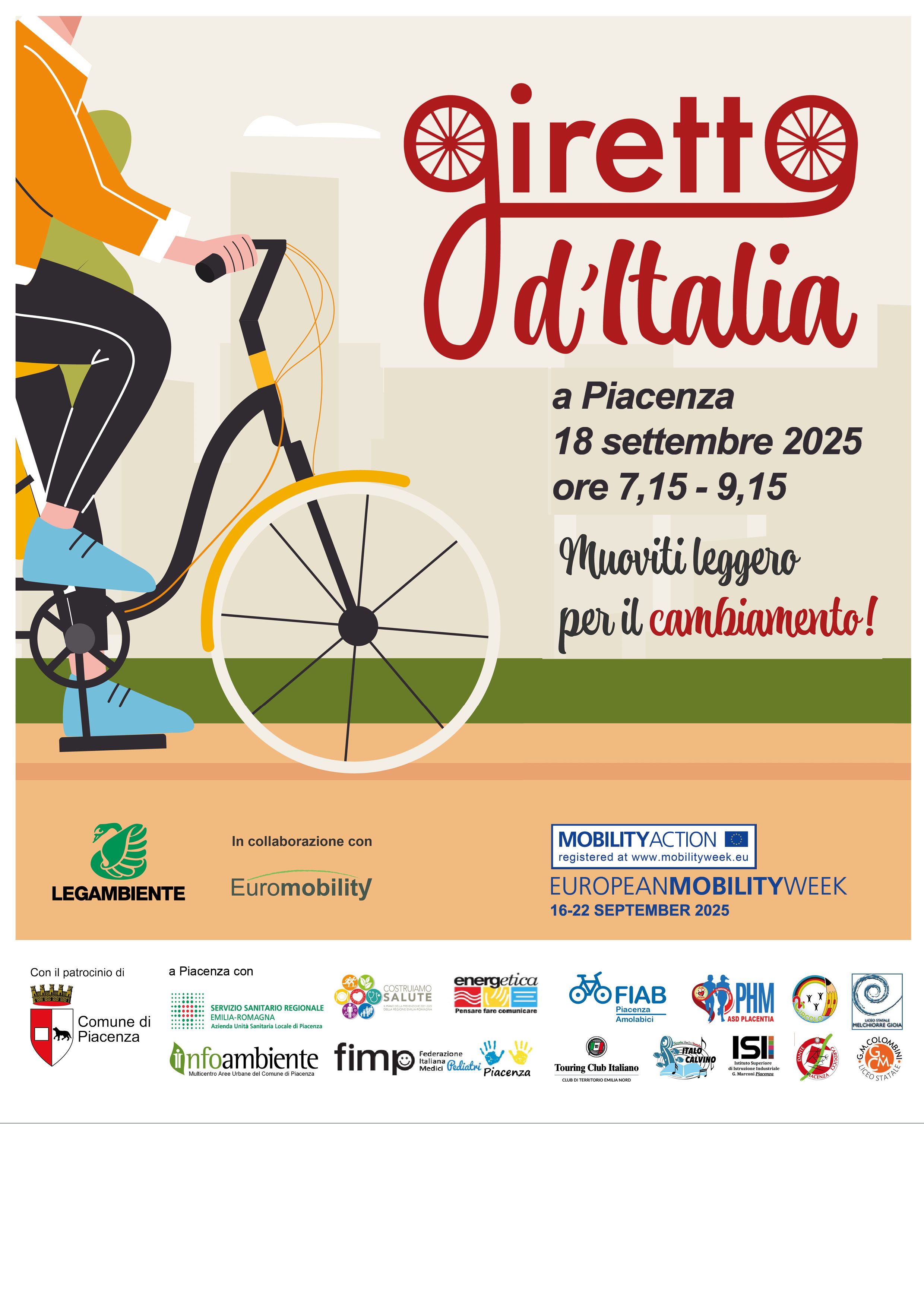 Guidati da FIAB Piacenza e da Alessandra Bonomini del CEAS del Comune di Piacenza, sabato 20 settembre i giovani consiglieri percorreranno la città in bicicletta, fermandosi in alcune tappe significative legate ai monumenti farnesiani. Al termine dell’esperienza, la proposta sarà presentata in Consiglio comunale per la discussione e l’approvazione per poterla proporre anche ai cittadini. L'altra iniziativa è l'ormai tradizionale “Giretto d'Italia” che si terrà domani dalle 7.30 alle 9.30, una tradizione per Piacenza visto che è alla sua undicesima edizione: saranno sette i check point previsti lungo le barriere di Piacenza nei pressi della stazione, di via Dante e di via Nasolini, come sempre verranno contati i passaggi in biciclette o in altri mezzi di micro-mobilità che verranno comunicati a Legambiente nazionale per decretare i vincitori tra le città che si saranno dimostrate più sostenibili.