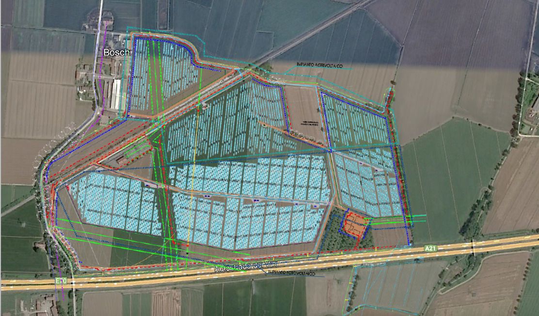 La costruzione dell'impianto per la produzione di energia da fonte rinnovabile solare, localizzato su terreni agricoli «non interessati da coltivazioni certificate o oggetto di disciplinari di produzione» compresi tra la rete autostradale A21 e la linea ferroviaria, in zona "Boschi", per una superficie complessiva di quasi 11 ettari e potenza di picco di quasi 25mila chilowatt, è una certezza.