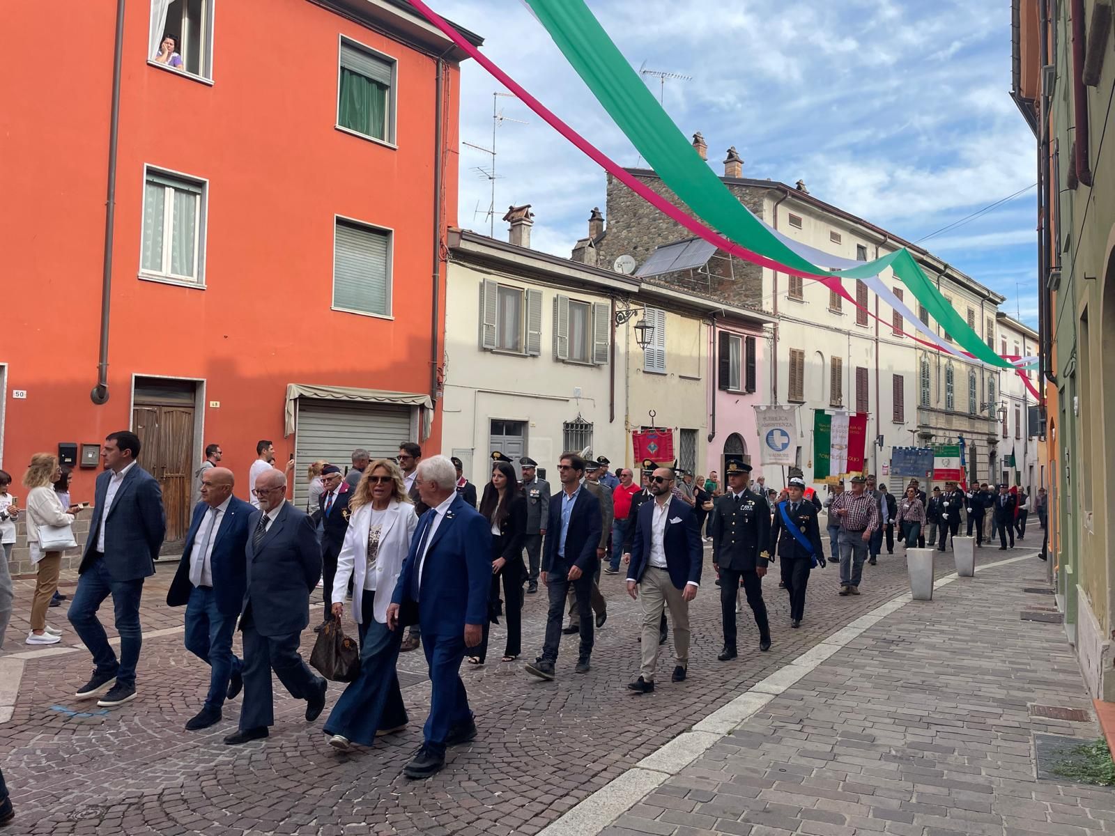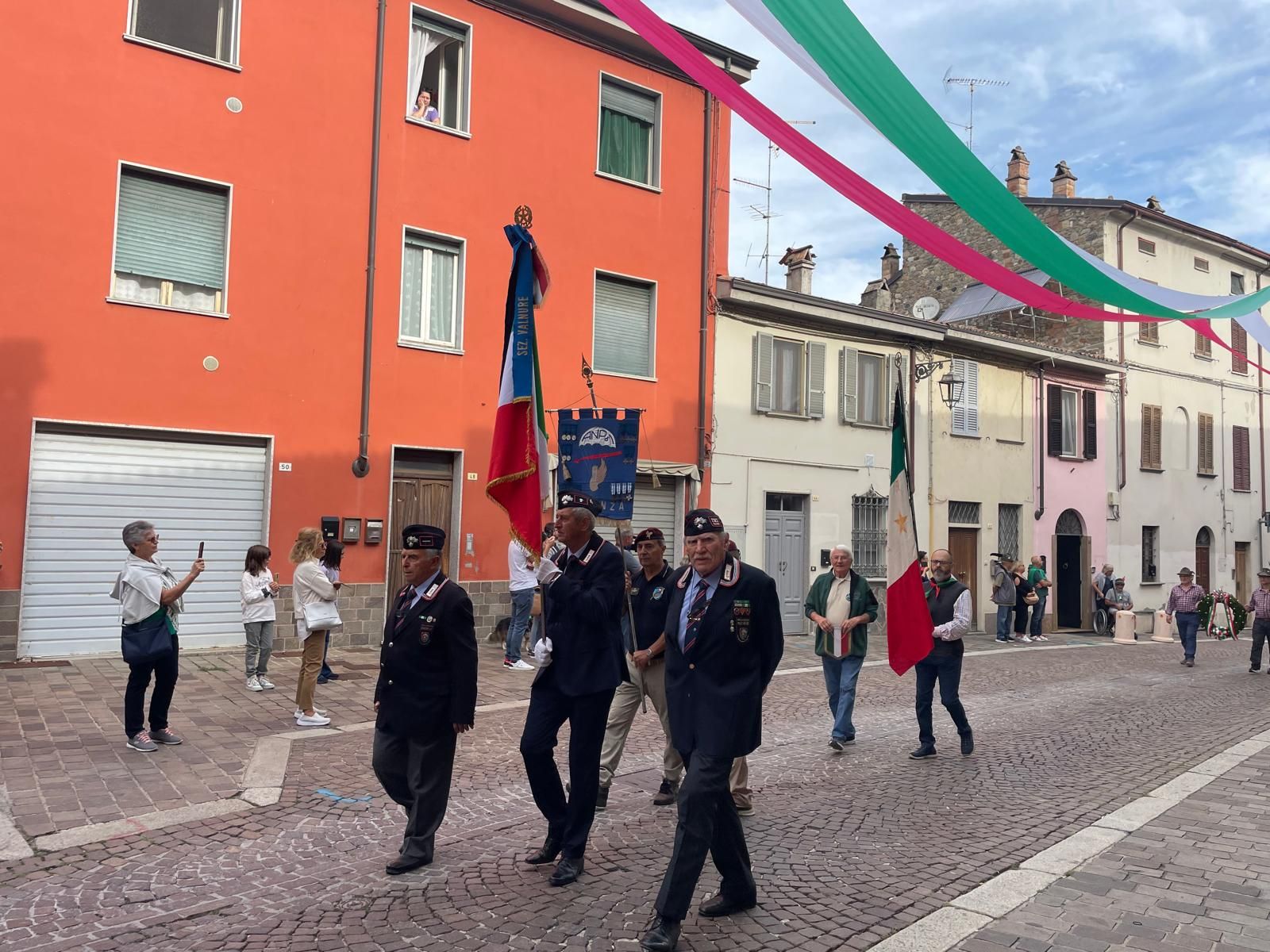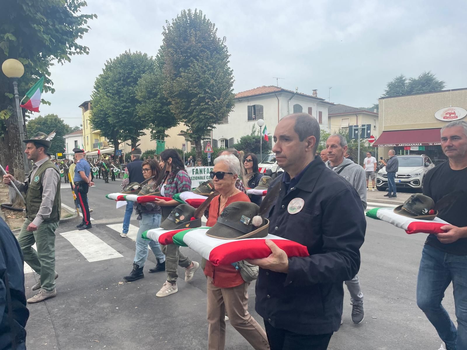 Per il primo anno alla Festa Granda non hanno sfilato i reduci di guerra, l’ultimo, Antonio Barbieri è morto pochi mesi fa. In corteo sono stati portati i cappelli dei reduci.