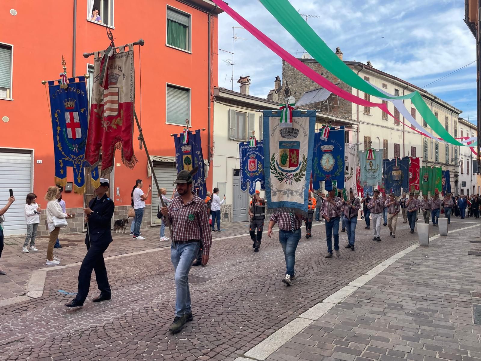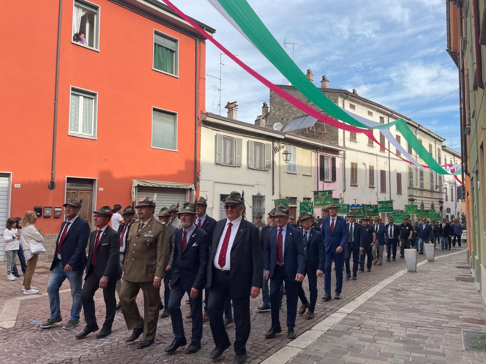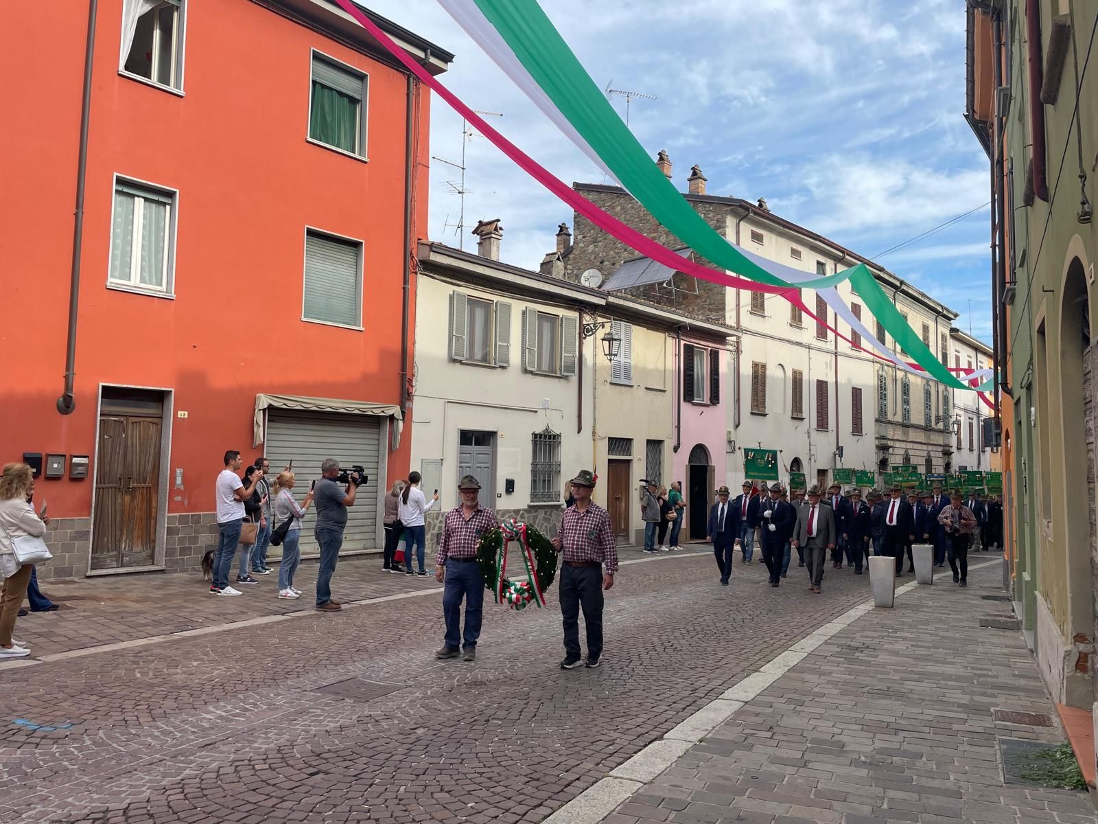 Per il primo anno alla Festa Granda non hanno sfilato i reduci di guerra, l’ultimo, Antonio Barbieri è morto pochi mesi fa. In corteo sono stati portati i cappelli dei reduci.