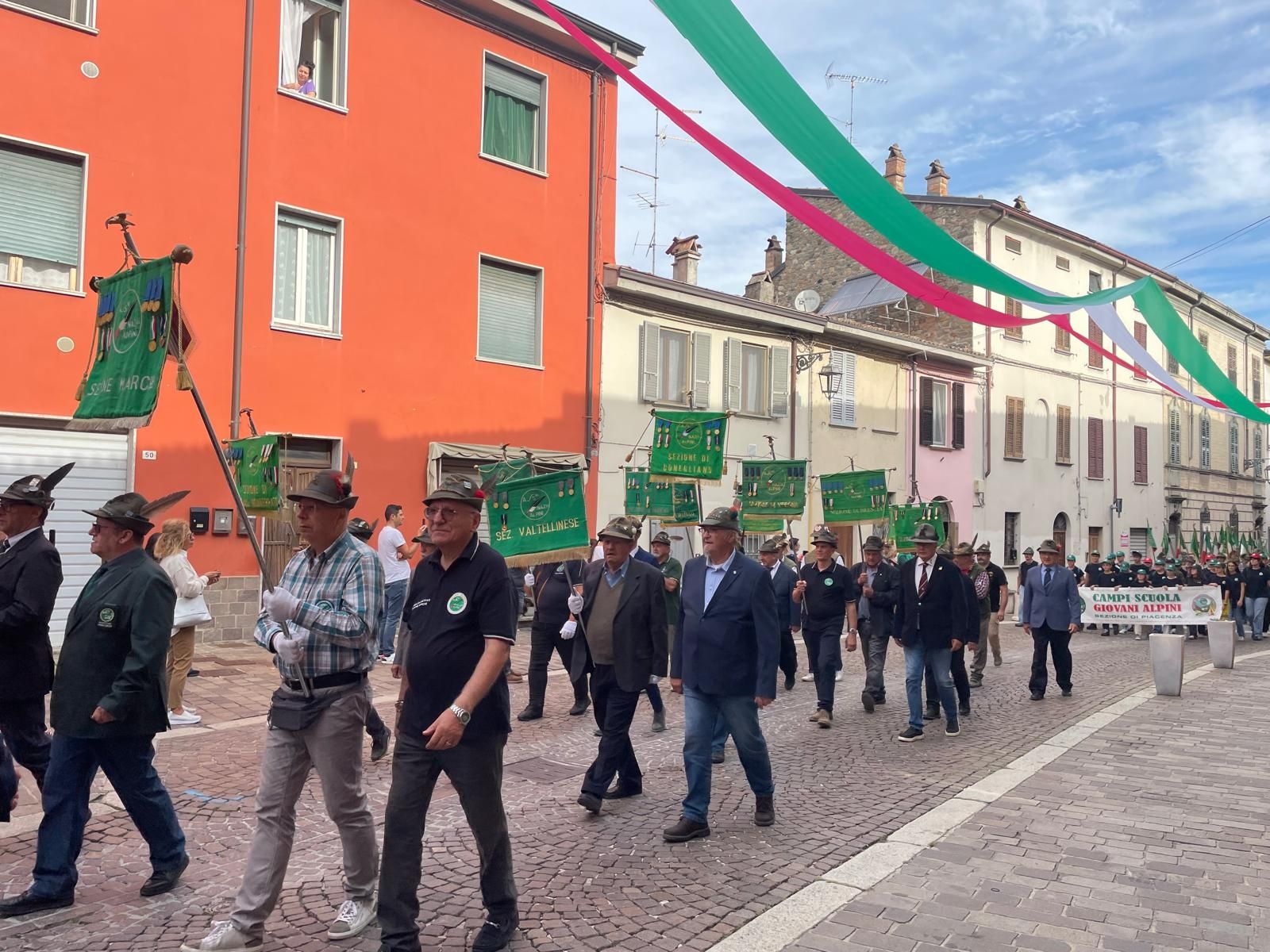 Tricolori, vetrine a tema, lunghi applausi: Pontedellolio e i suoi cittadini hanno accolto gli alpini piacentini per la 72esima Festa Granda. Seicento le Penne Nere che hanno sfilato lungo le vie del paese e per il terzo anno anche i ragazzi e le ragazze del Campo Scuola hanno marciato sulle note suonate dalla Fanfara sezionale.